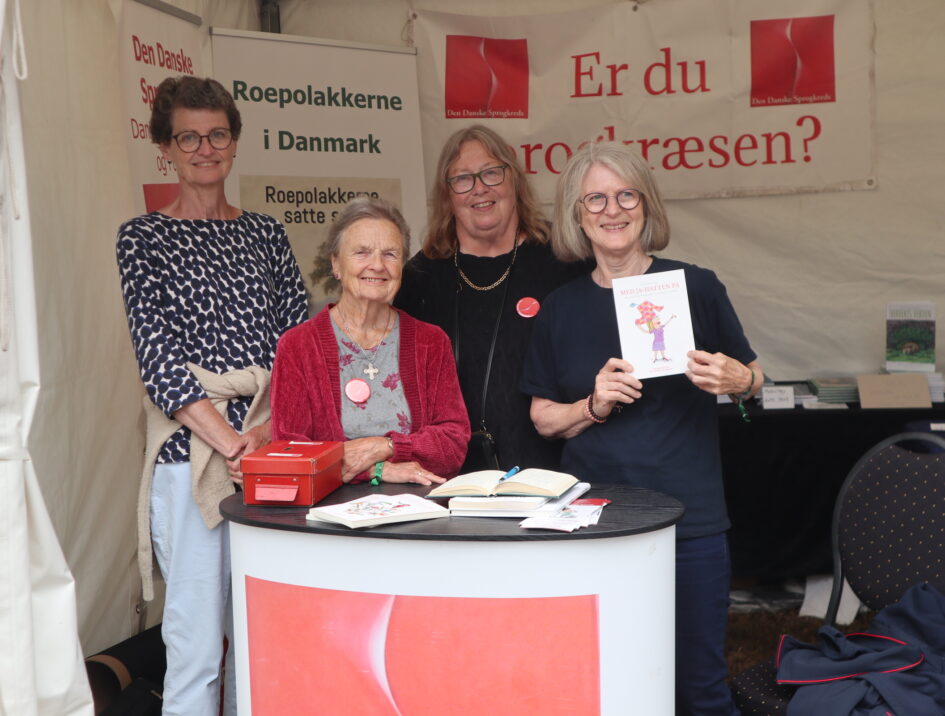 Forlaget Bostrup havde i samarbejde med Forfattergruppen Os hernedefra og Den Danske Sprogkreds fået en ret pæn udstilling stablet på benene i telt 13, og Karin Louise Sigurskjold, Ingrid Slott, Lise Bostrup og Ingrid Probst var ganske tilfredse.